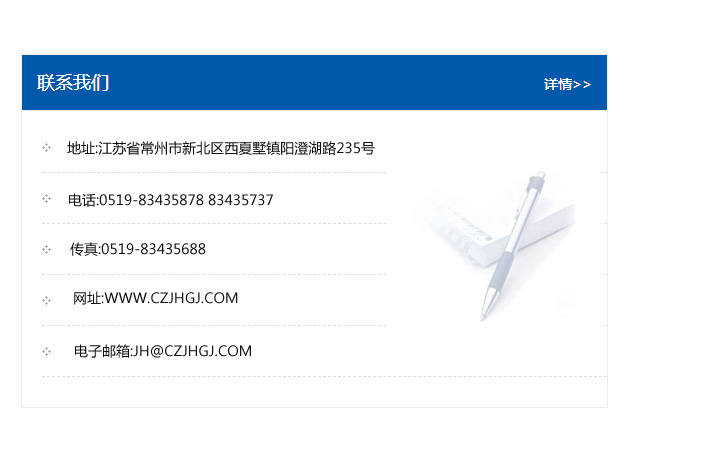 地址:常州市新北區友邦商務大廈1幢16、17層  電話:0519-85101652  傳真:0519-85112595  郵編:213022  網址:www_cz-jiayue_cn.yajtnh.com  郵箱:xiajifengaa@163.com